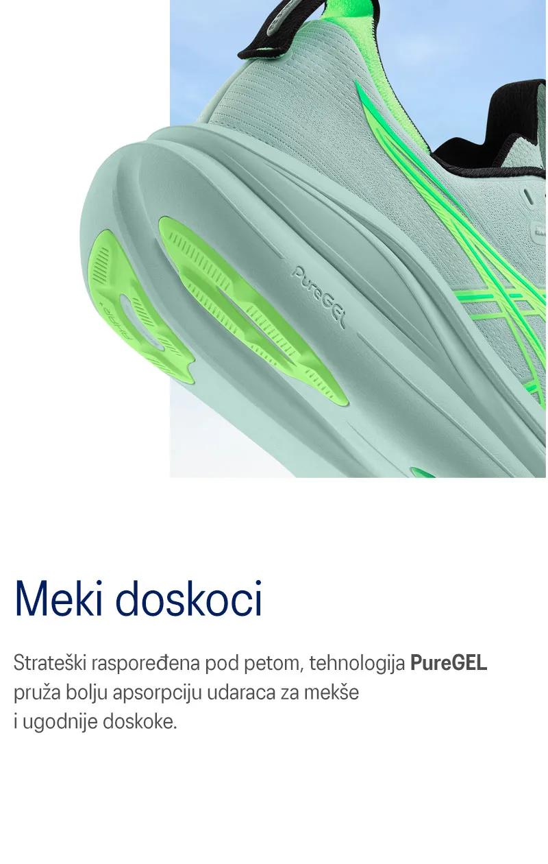 Nove patike GEL-NIMBUS28 kilometar za kilometrom (za kilometrom) pružaju mekoću i udobnost nalik na hodanje po oblacima.