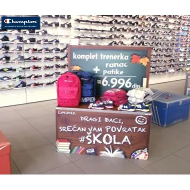 U svim Sport Vision prodavnicama u ponudi je četvorodelni Champion paket po jedinstvenoj ceni od 6.996 dinara. Champion gornji i donji delovi trenerke, patike i ranac urađeni su u prepoznatljivom stilu brenda a nakon akcije koja traje do 6.septembra, proizvodi će moći da se kupe odvojeno ali po redovnim cenama.
