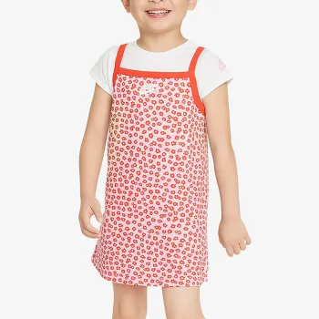 Nike FLORAL je set haljine i majice kratkih rukava za devojčice. Cvetni dizajn ovog seta od pamučnog/poliester džerseja inspirisan je 90-im. Majica je jednostavnog i svedenog dizajna sa diskretnim Nike logom na rukavu. Haljina ima udoban A-kroj koji olakšava slojevito oblačenje, dodatni rastegljiv materijal za slobodu pokreta i može se nositi preko biciklističkih šortseva ili helanki za potpunu pokrivenost.